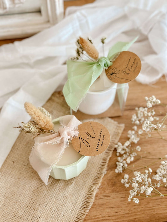 Vela Personalizada para Lembrança de Casamento, Batizado e Eventos | Copo de Cerâmica Verde Claro | A partir de 7,43€