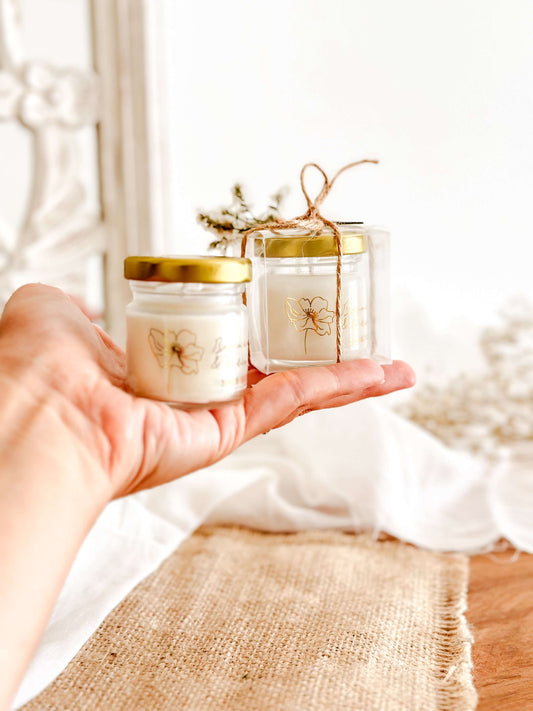 Mini Vela Personalizada para Lembrança de Casamento, Batizado e Eventos | Pote Vidro Mini 30g | A partir de 2,62€
