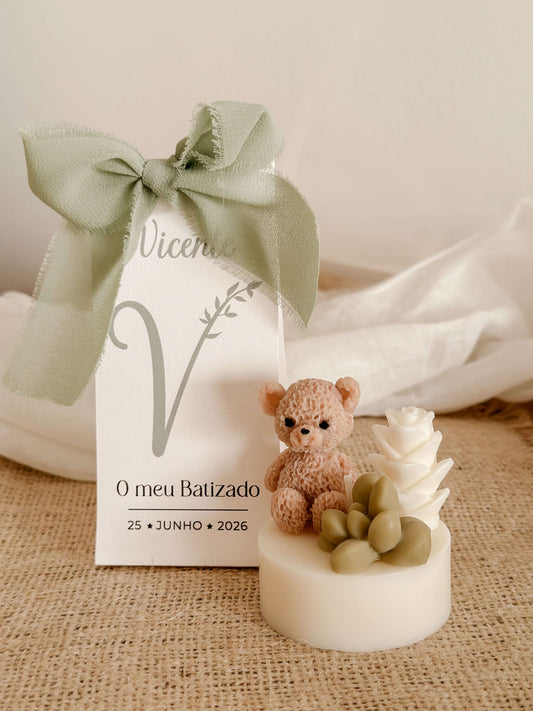 Mini Vela Ursinho e Cactos | Lembrança de Batizado ou Baby Shower | A partir de 3,38€