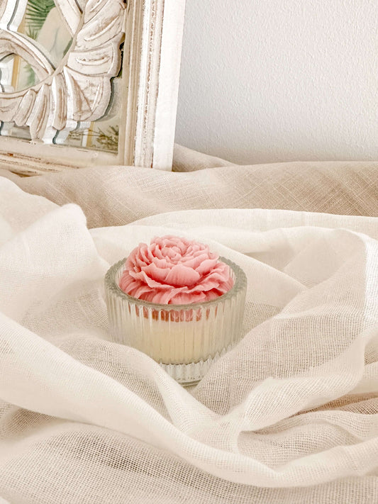 Mini Vela Suporte de Vidro | Peónia | Lembrança de Casamento, Batizado e Eventos | A partir de 3,38€