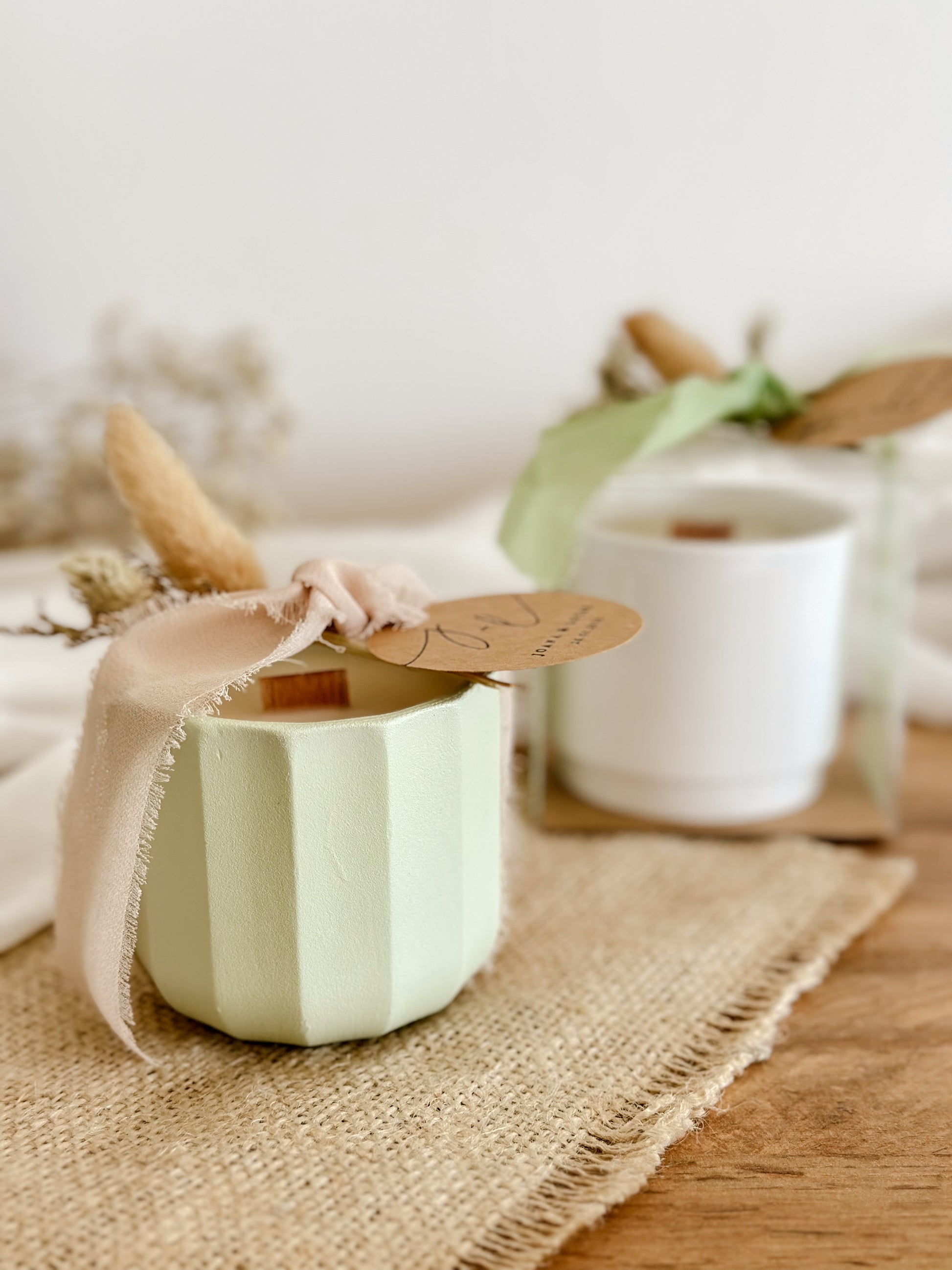 Customized Candle for Wedding, Baptism, and Events | Light Green Ceramic Cup | Starting from 7.43€