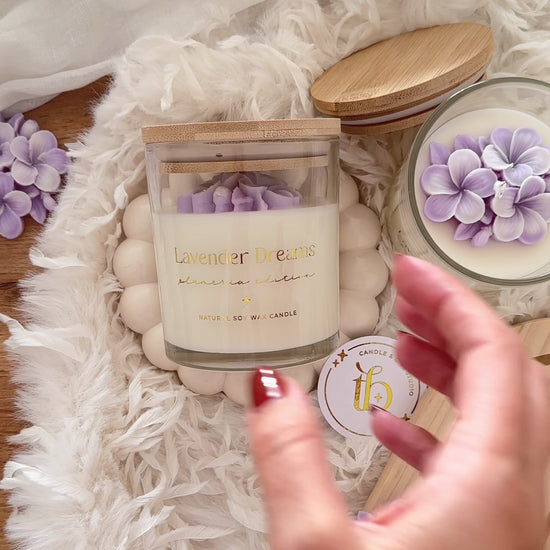 A Lavender Dreams – Plumeria Edition é uma vela botânica de 200g, feita à mão com cera de soja natural e decorada com uma flor de plumeria em tons lilás, moldada em cera. Uma peça delicada e romântica que transmite serenidade e leveza, perfeita para momentos de calma e introspeção.